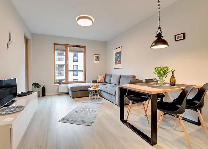Das Apartment 4 Seasons Jelitkowo + Beach bietet einen Wohnbereich, eine Terrasse und eine Sitzecke und Annehmlichkeiten wie eine Waschmaschine. Hier gibt es zudem 1 Bad. Außerdem finden Sie hier einen Haartrockner, kostenlose Toilettenartikel und Badelaken.